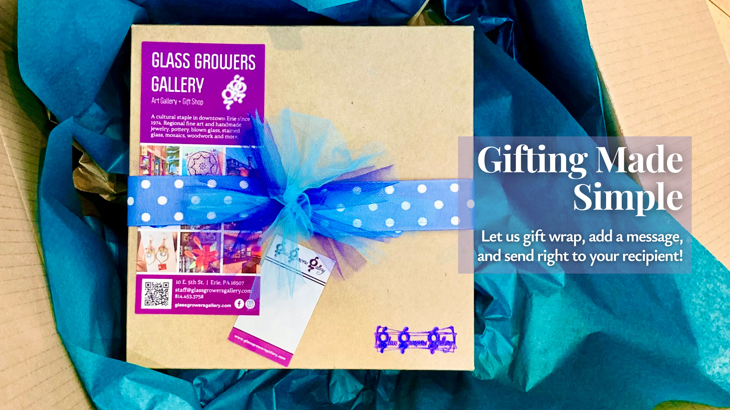 Celebrating 50 years, Glass Growers Gallery is proud to be a fixture of downtown Erie's cultural sector. We feature over 90 regional artists and over 100 artisans from across the country. We offer rotating gallery exhibits, artist workshops and events, shopping consultations, artwork selection and installation services, and corporate gifts and awards.