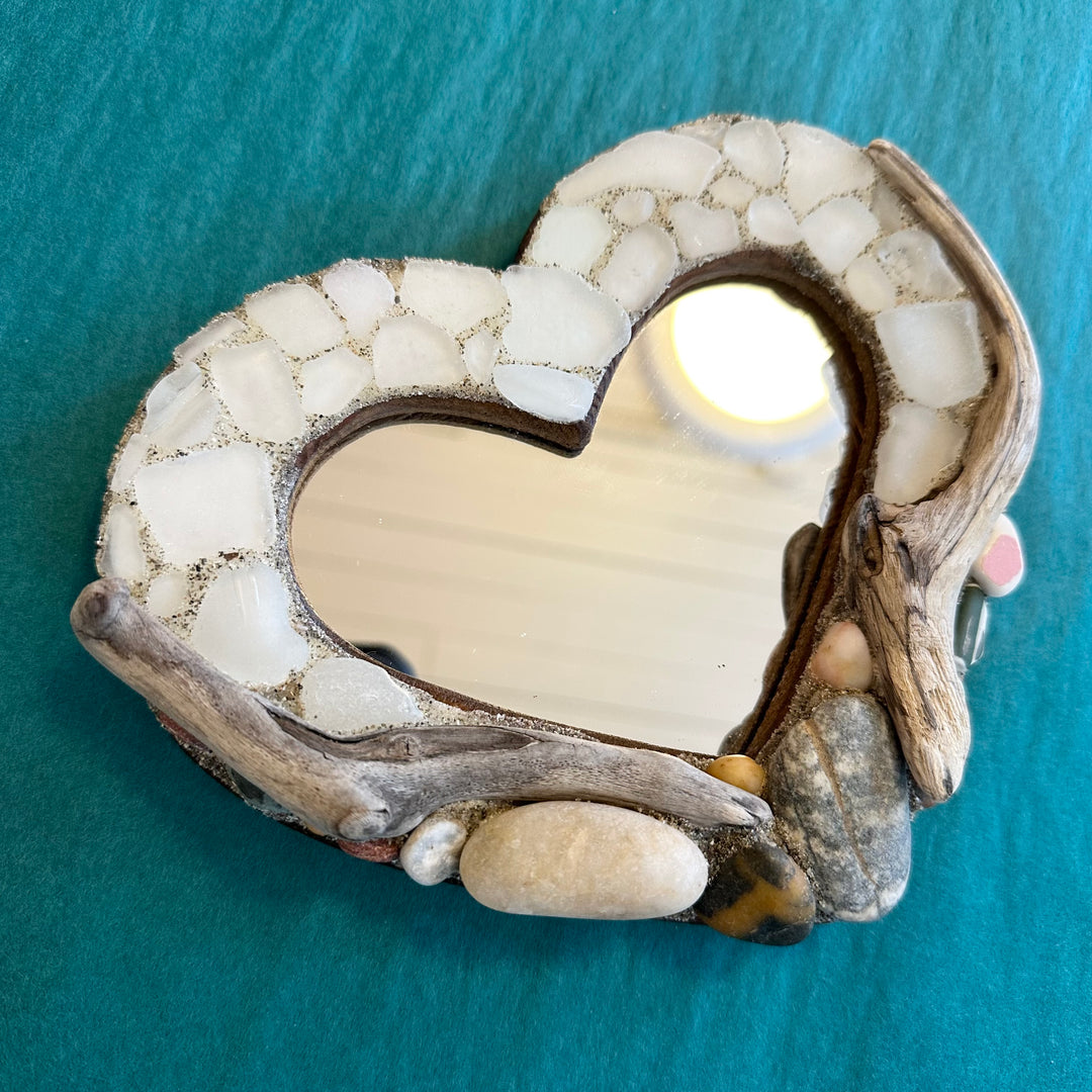 Driftwood + Beach Glass Blue LOVE Floating Stand Large