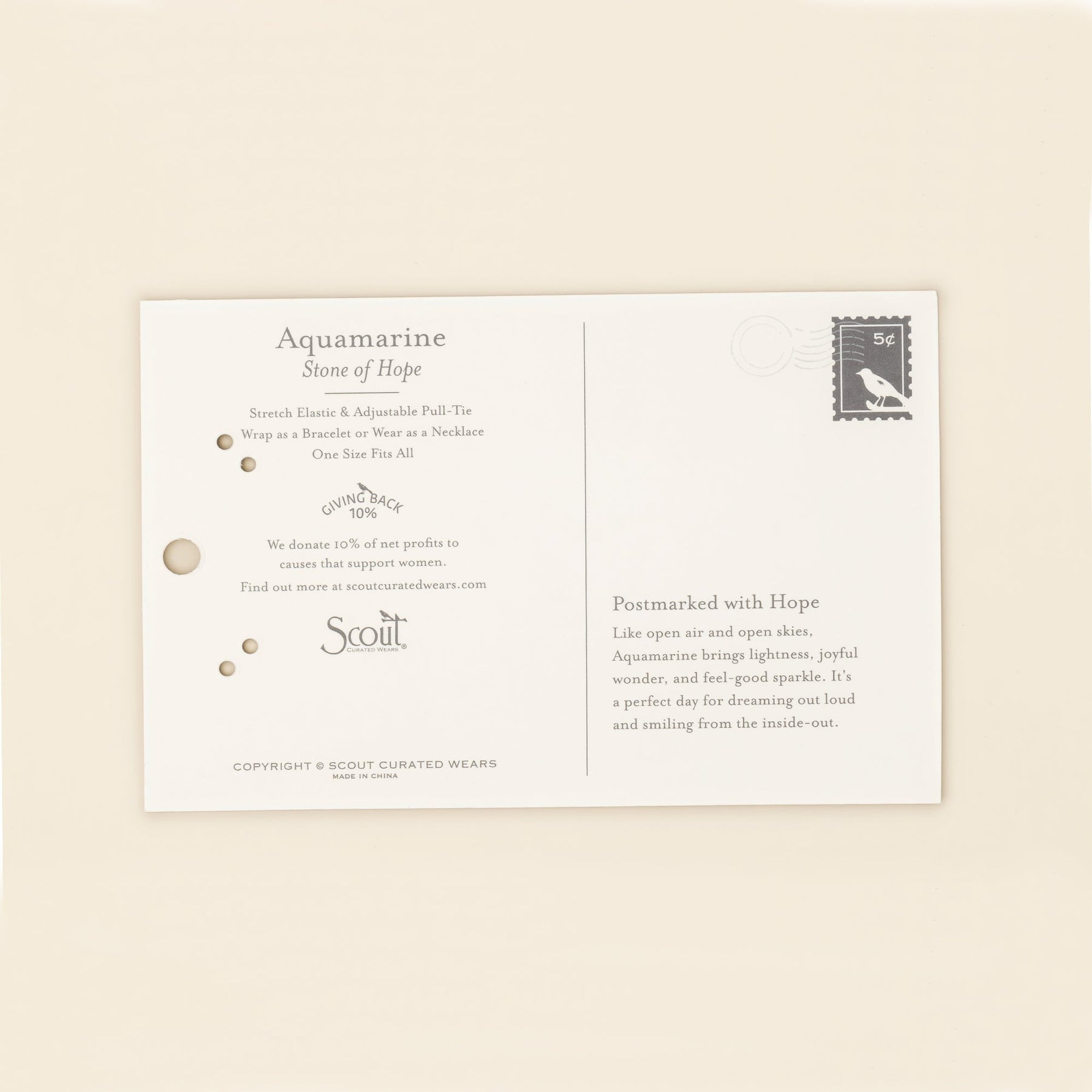 Hand strung with Japanese Miyuki Beads, organic pearls, and meaningful stones, each bracelet/necklace wrap comes packaged on a nostalgia-inspired postcard that celebrates life's journey & heartfelt connections.