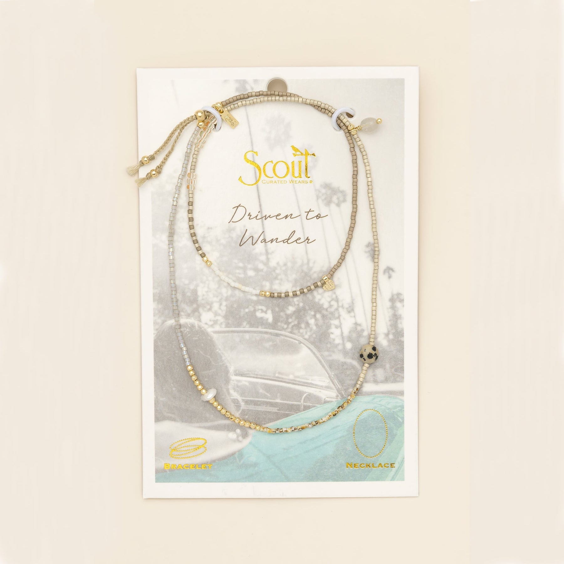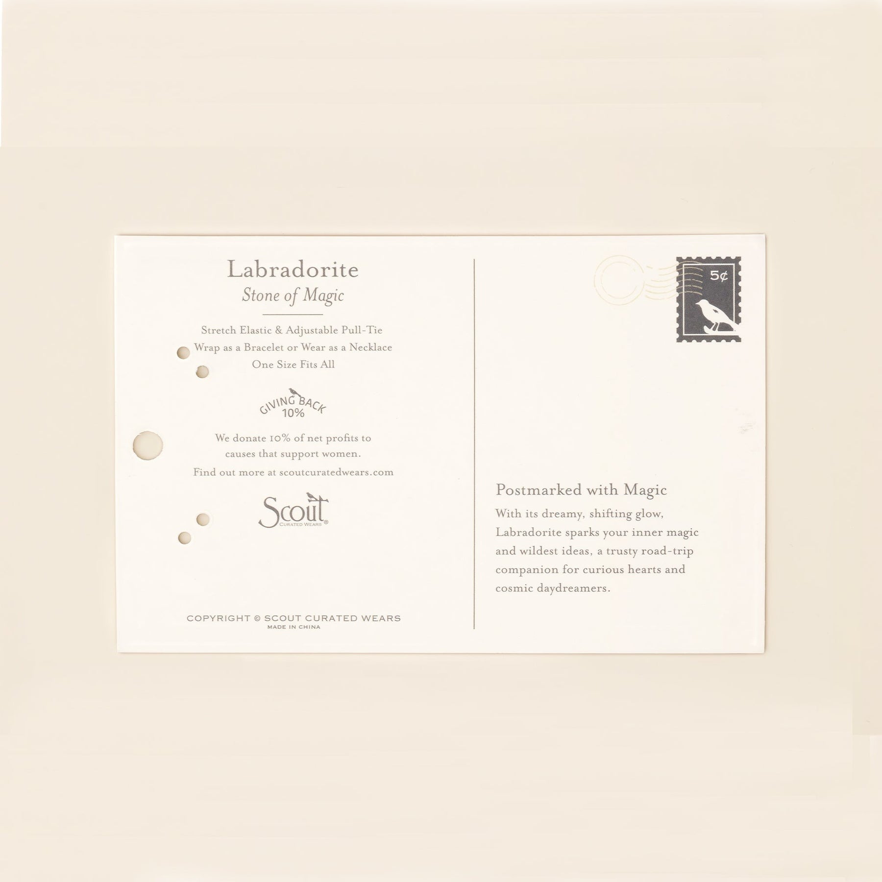 Hand strung with Japanese Miyuki Beads, organic pearls, and meaningful stones, each bracelet/necklace wrap comes packaged on a nostalgia-inspired postcard that celebrates life's journey & heartfelt connections.