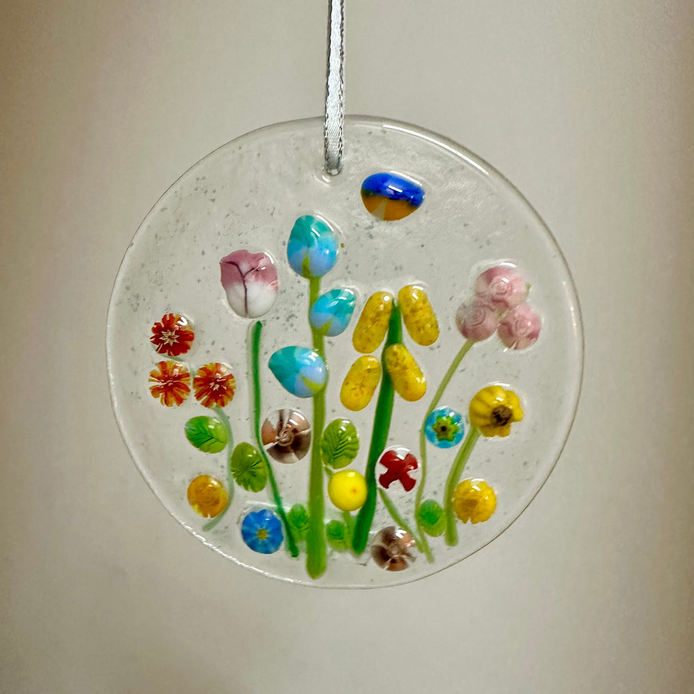 Dorothy Darroch began her pursuit of glass designs while creating a mosaic barber pole picture for her son’s new barber shop. The need for additional tools took her to a studio in the Pittsburgh area where she signed up for a beginner class in stained glass. The next style of glass making to try was fused glass. One class begot another and another until Dorothy felt comfortable (brave) enough to purchase her first kiln.