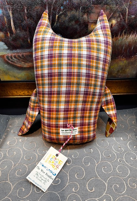 This Wee Beastie is the more than darling. Made from patches of cloth and a little felt, this Owl is sure to delight!