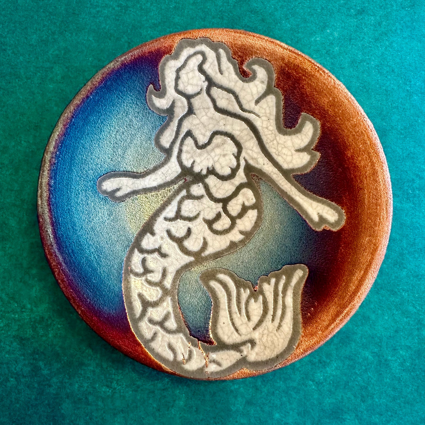 Raku is a decorative pottery created by hand and fired in an outdoor pit. The intense heat creates a blaze of colors on the finished surface. Due to the nature of the process, variations are normal from piece to piece.