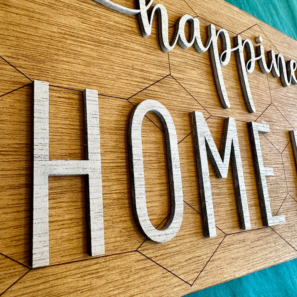 Add a little joy to your world with this sign that reads, "Happiness is Home Made."