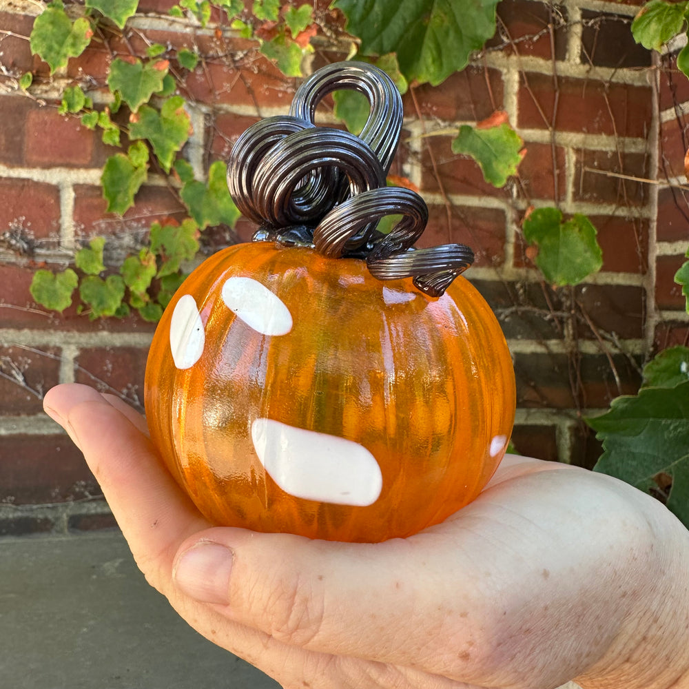 Glass Pumpkin - Small Orange + White with Black Stem