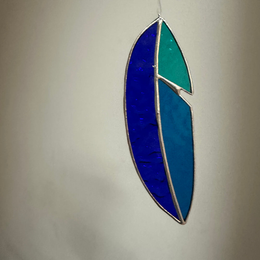 Stained glass feathers made from translucent, opalescent, colorful & textured glass.