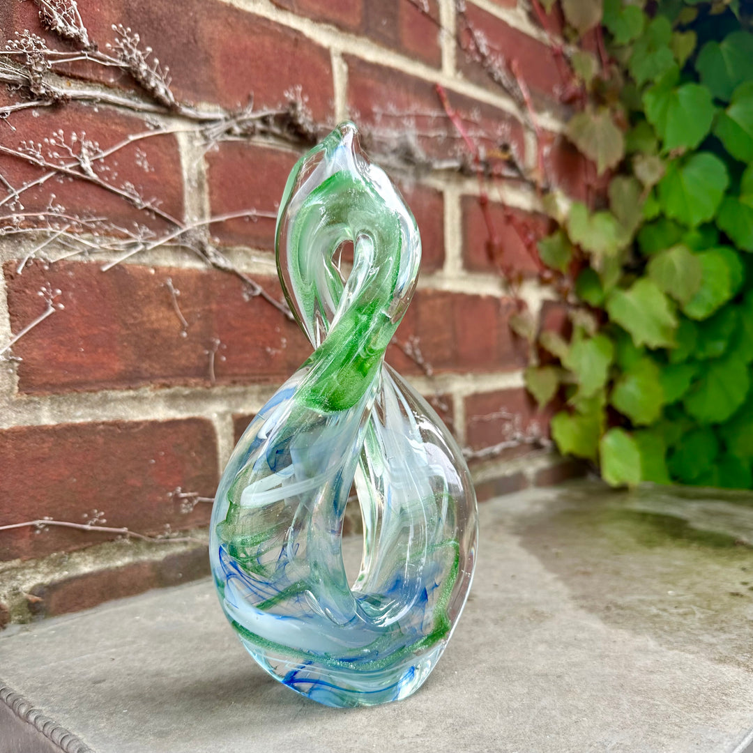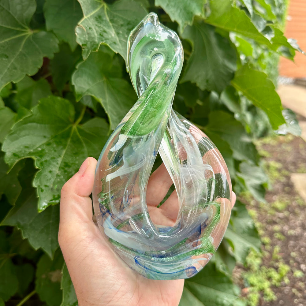 Glass Pumpkin - Small Blue + White with Purple Stem