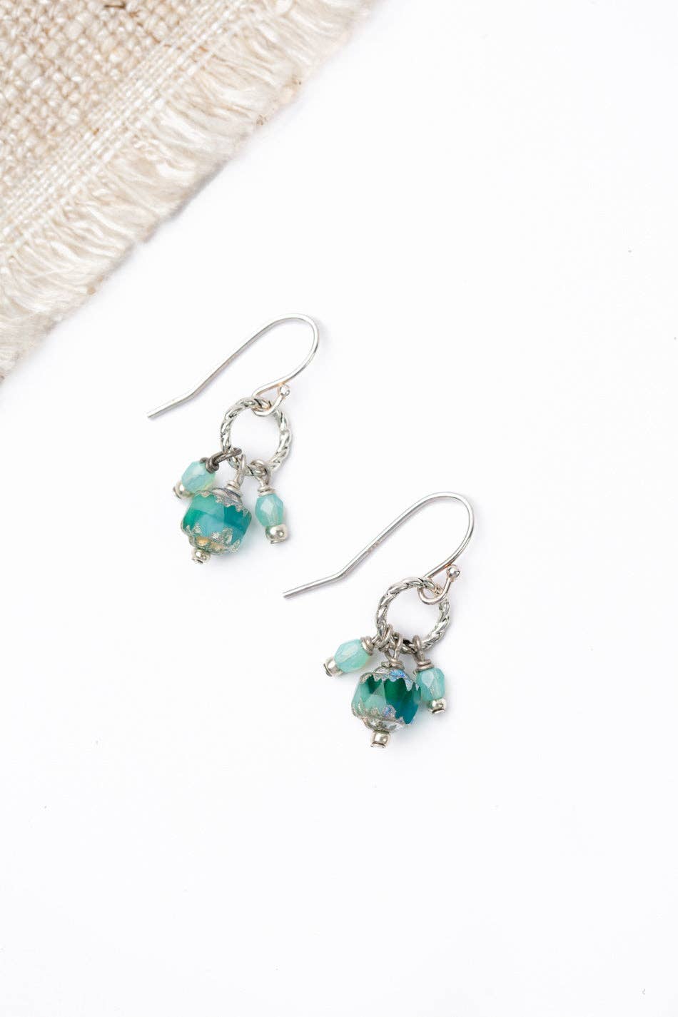 Silver Etched Aqua Glass Cluster Earrings