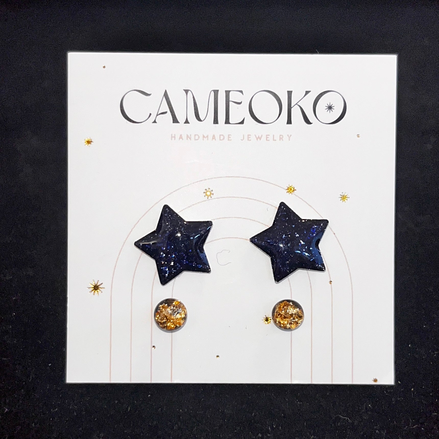 Ring in the holiday with these beauties! The Star Pack Earrings come with a set of Star Earrings and a set of small Circle Earrings. They each have a glossy resin coating and surgical steel butterfly clutch backings.