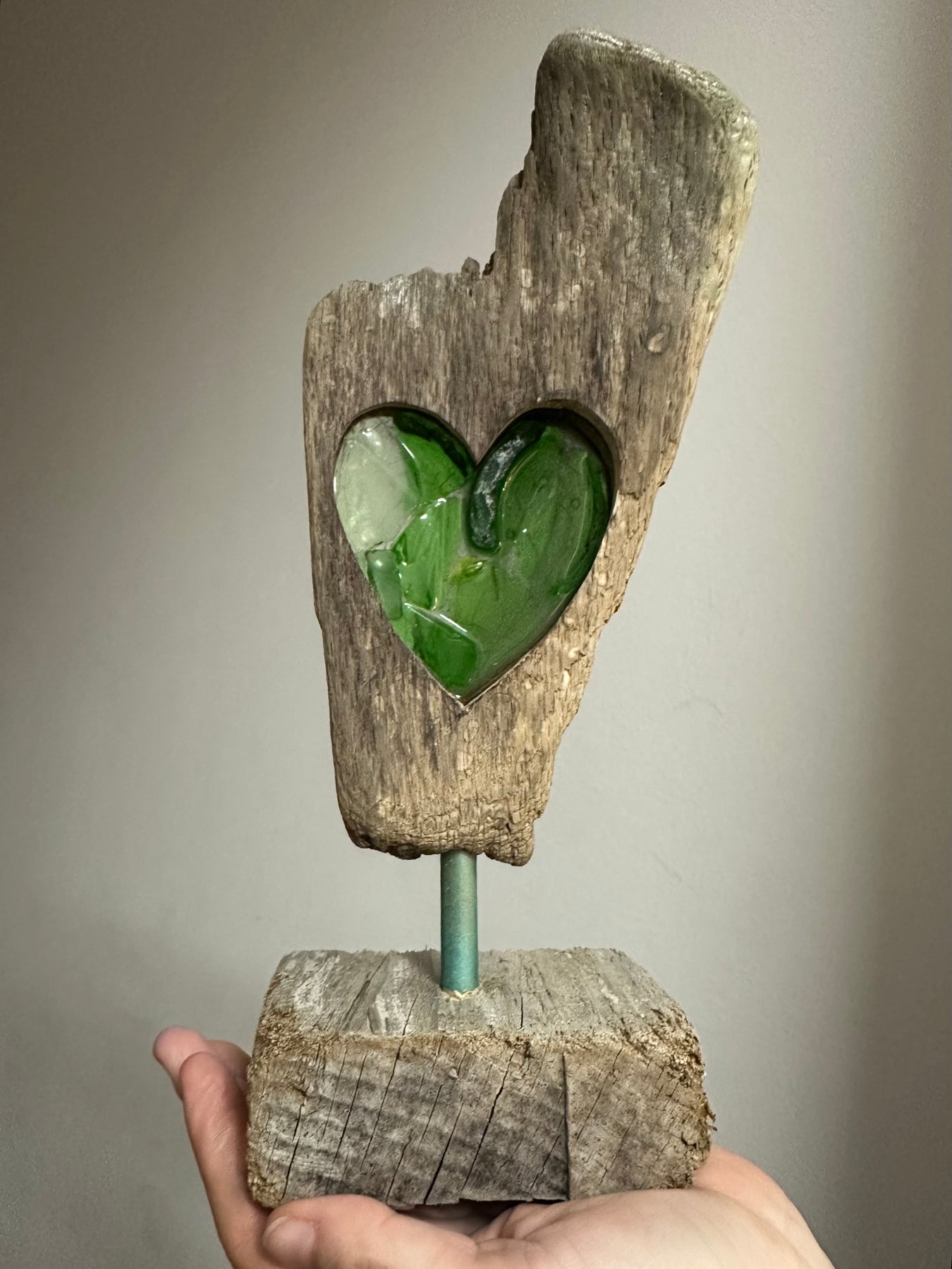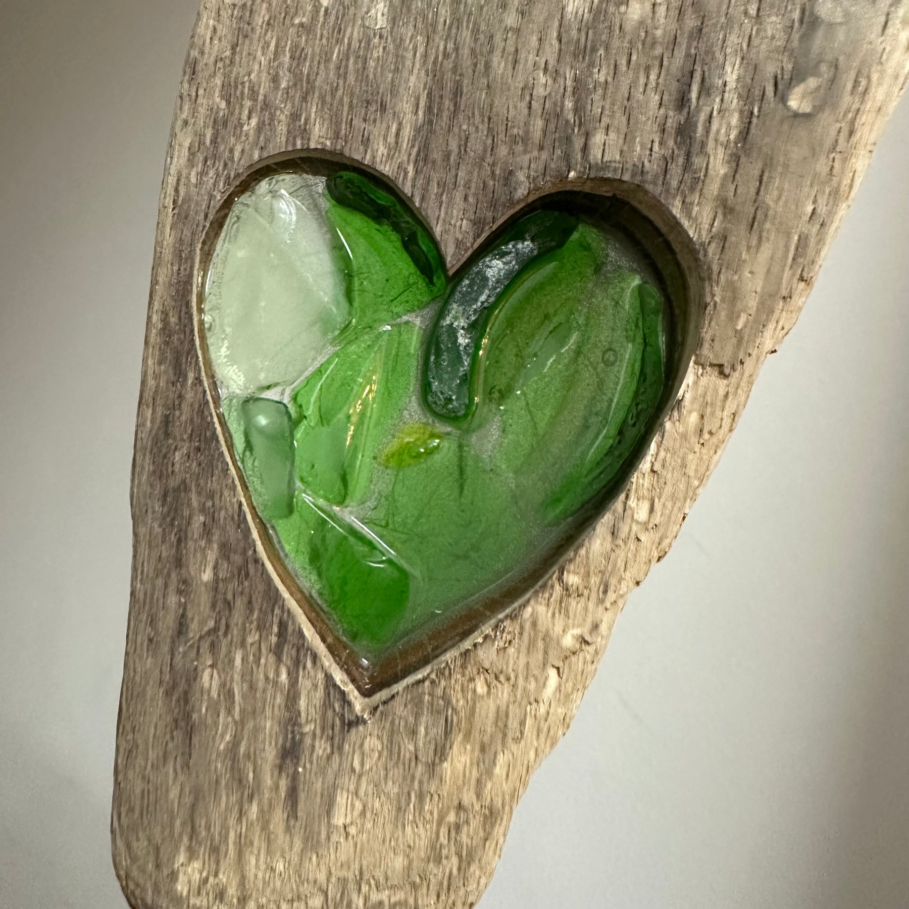 Large Driftwood Heart - Green Beach Glass
