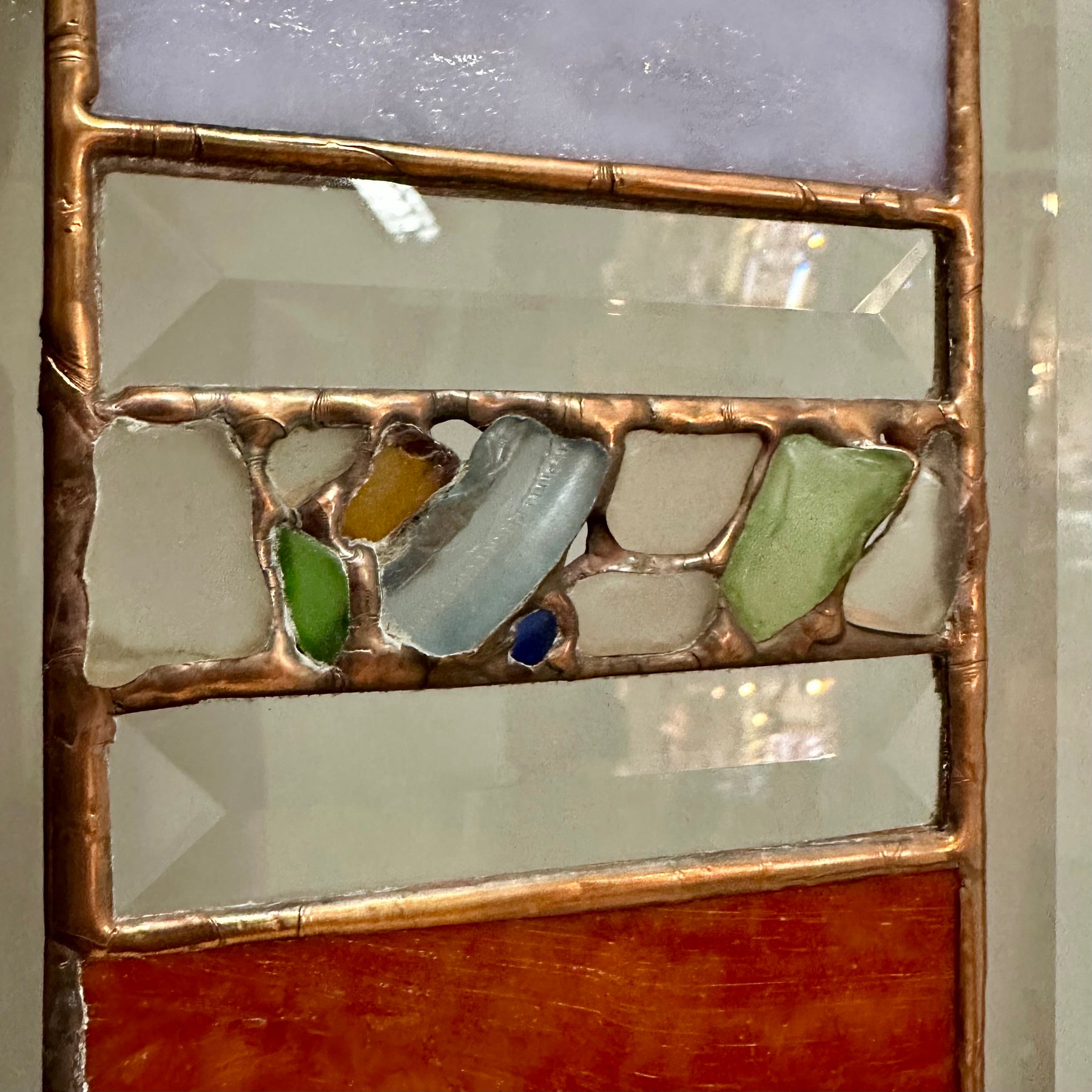 Decorative glass panel with genuine Lake Erie beach glass accents.  Copper solder lines.