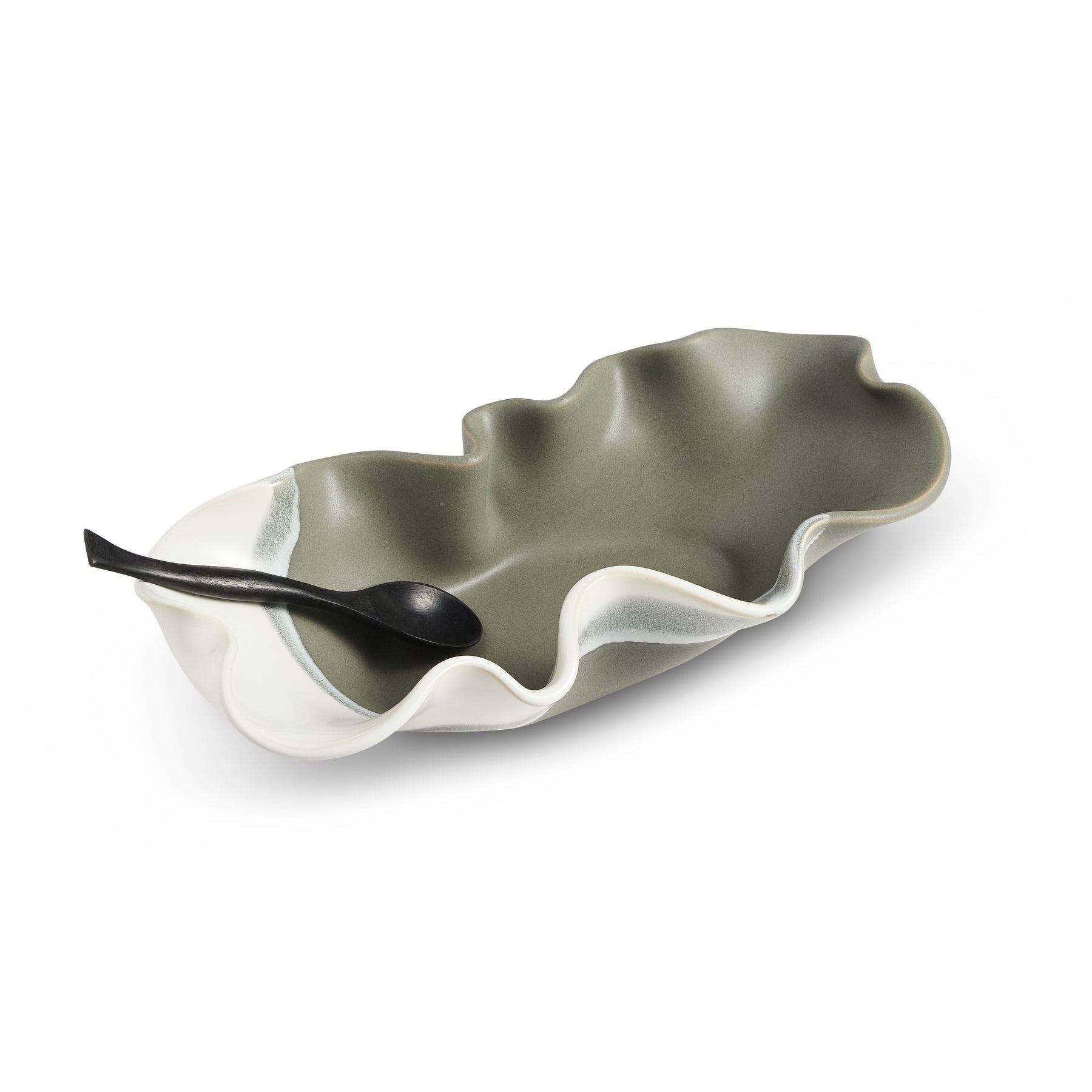 An oblong shaped bowl that comes with a medium rosewood spoon.