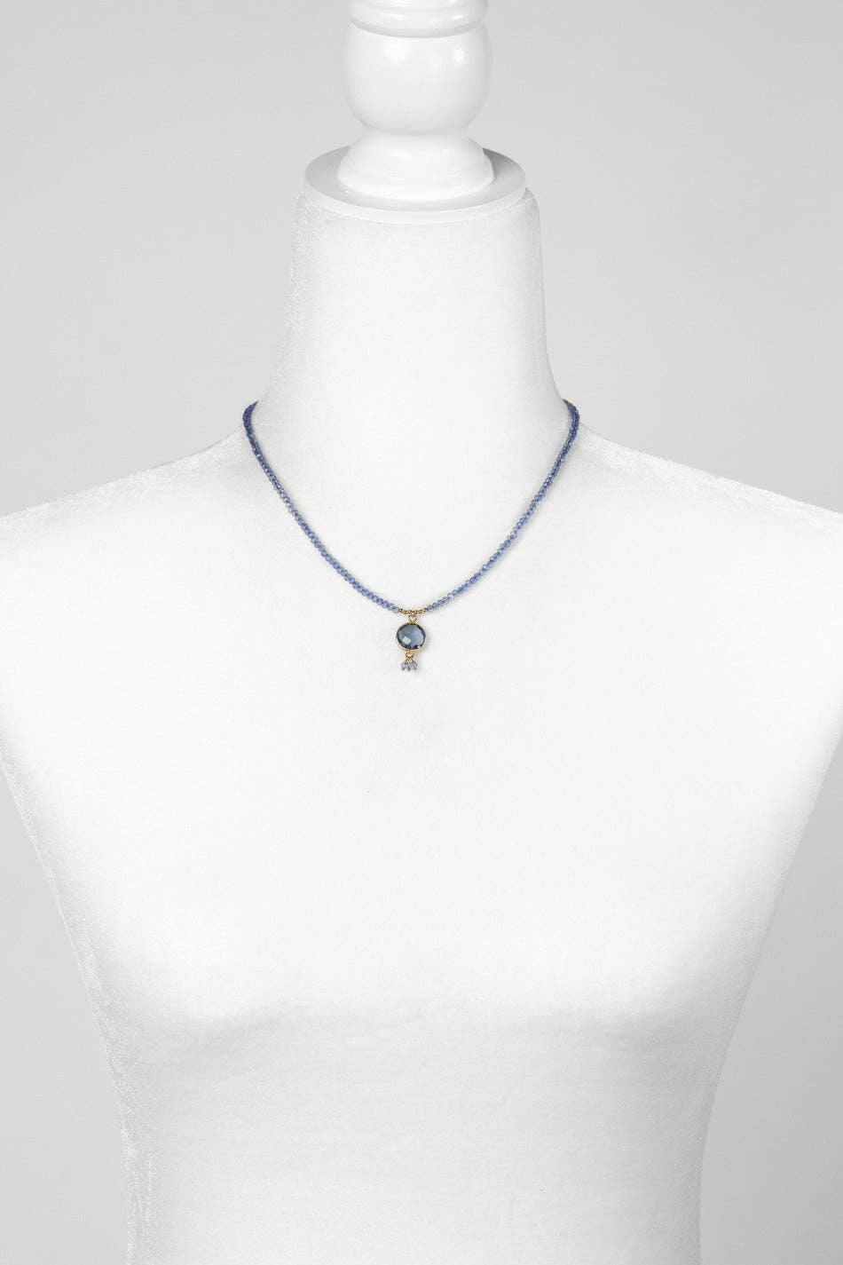 Forget Me Not 15.5-17.5" Faceted Iolite Bezel With Crystal Dangles Simple Necklace