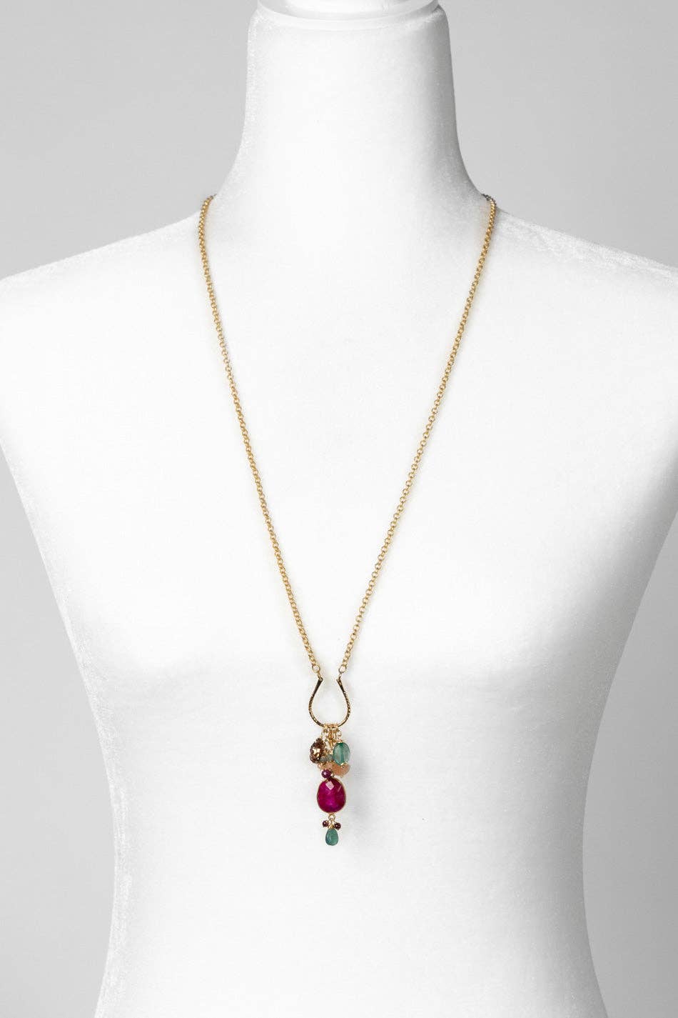 Gumdrop 29-31" Ruby, Peach Moonstone, Garnet, Kyanite Cluster Necklace