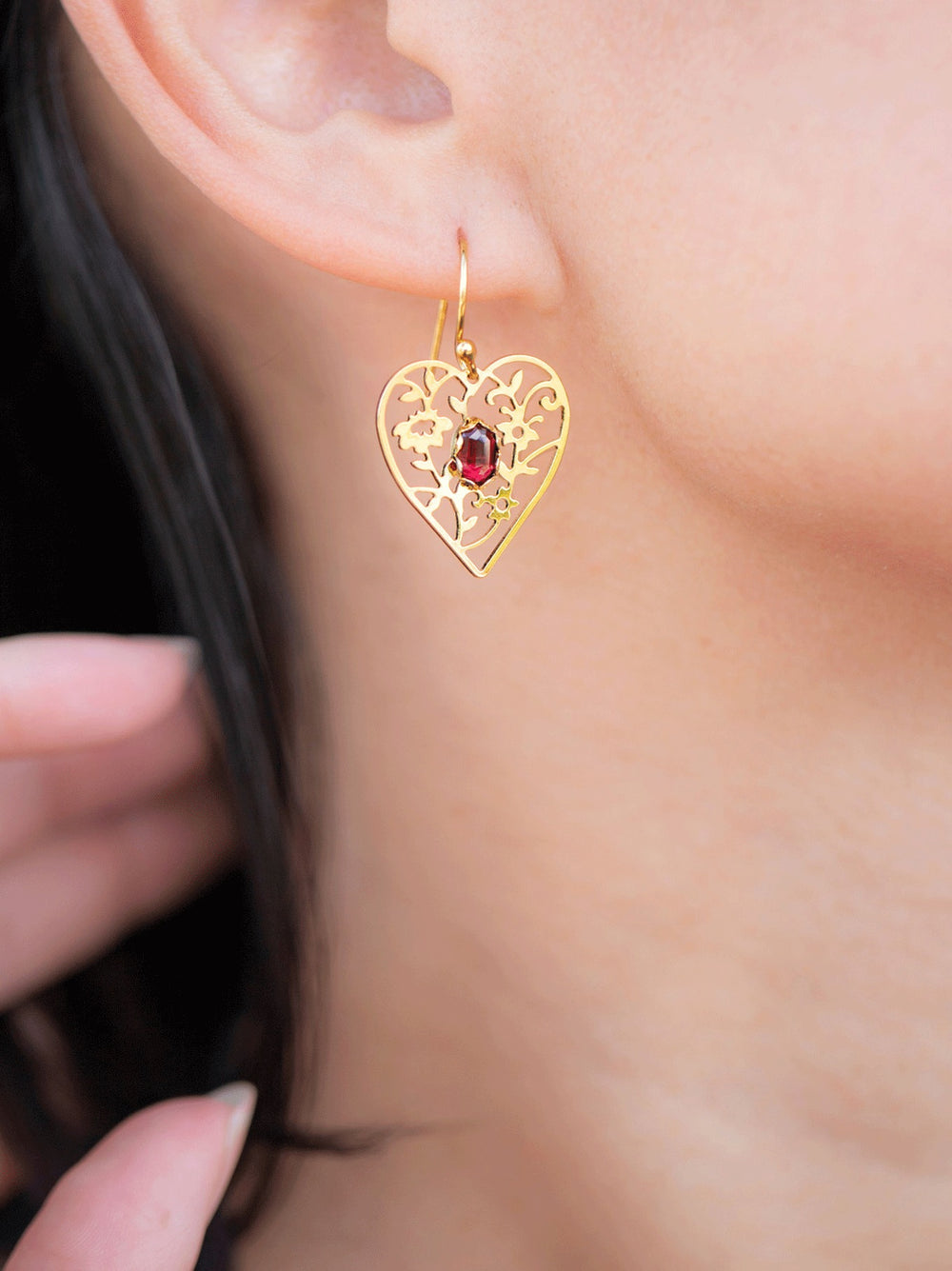 Blooming Heart Earrings Garnet/Gold