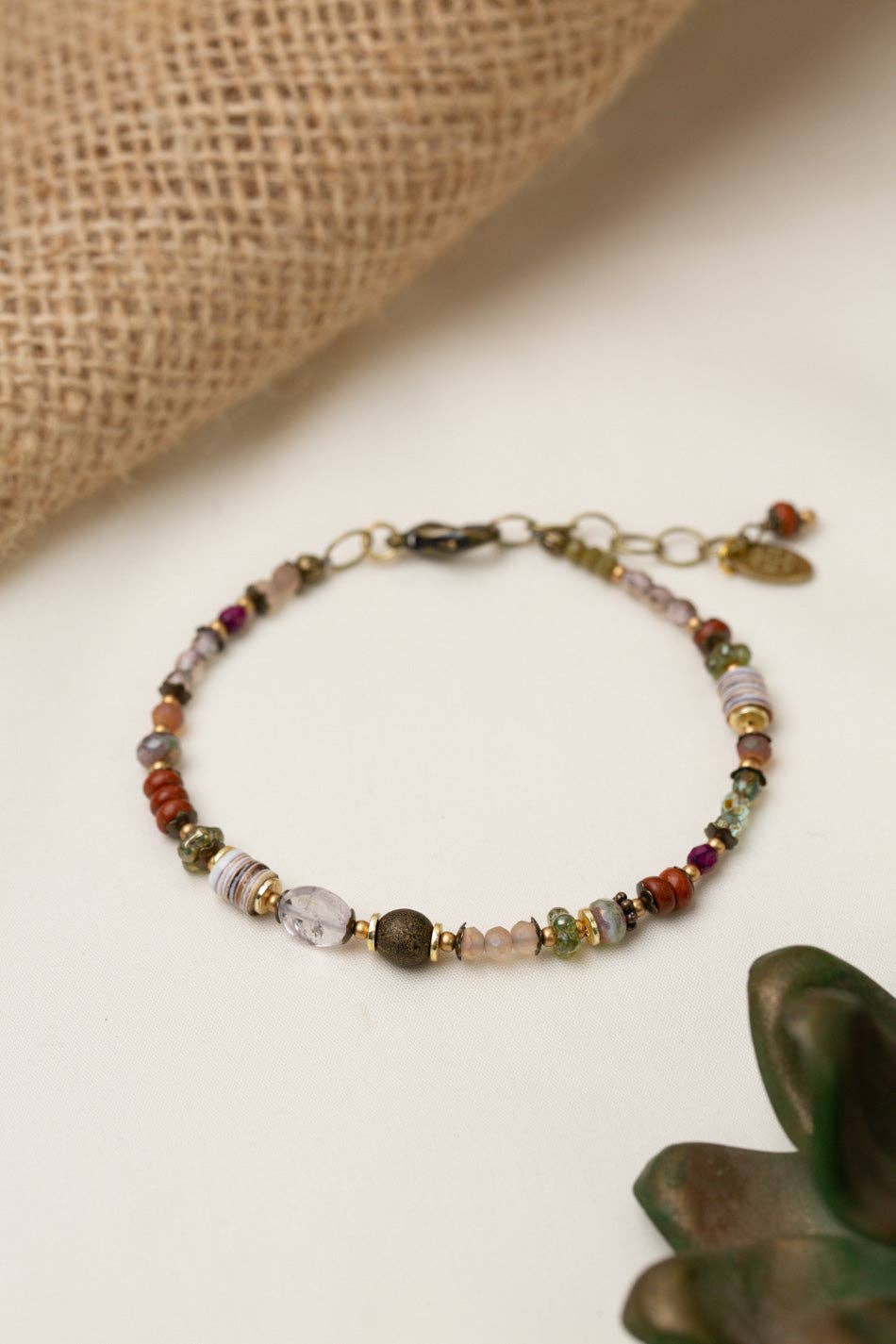 Wildflower Amethyst, Faceted Czech Glass + Shell Bracelet