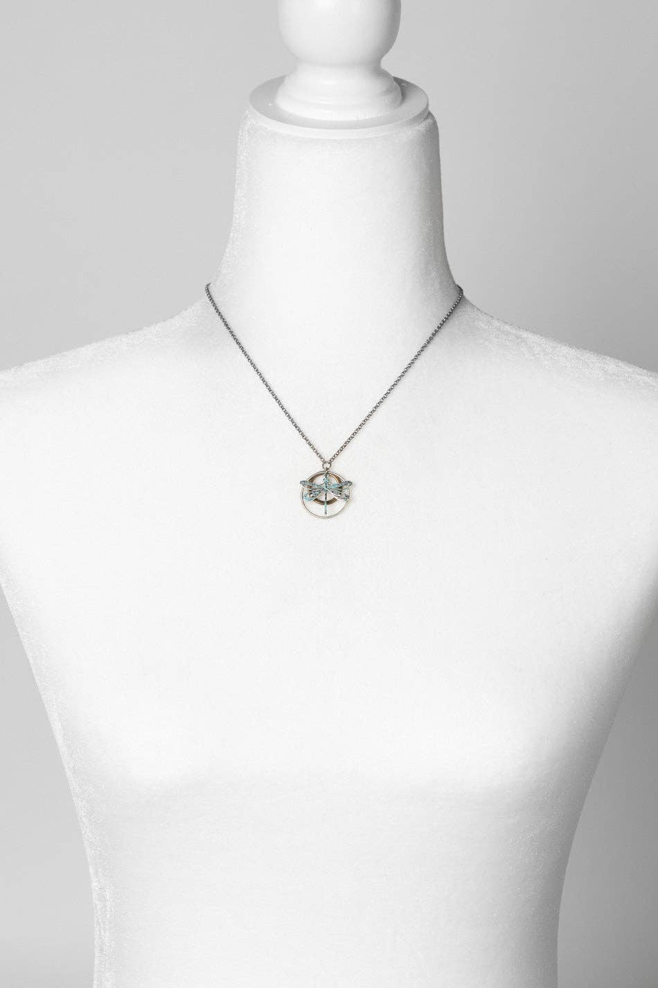 Wisdom Within Small Patina Dragonfly + Hoops Necklace