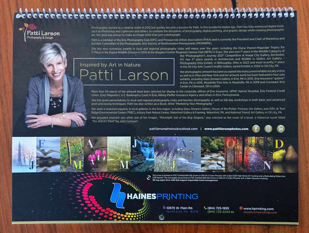 Patti is a member or the Erie Photography Club, Presque Isle Artists Association and is currently President of the Photographic Arts Society of Northwestern Pennsylvania (PASNWPA).