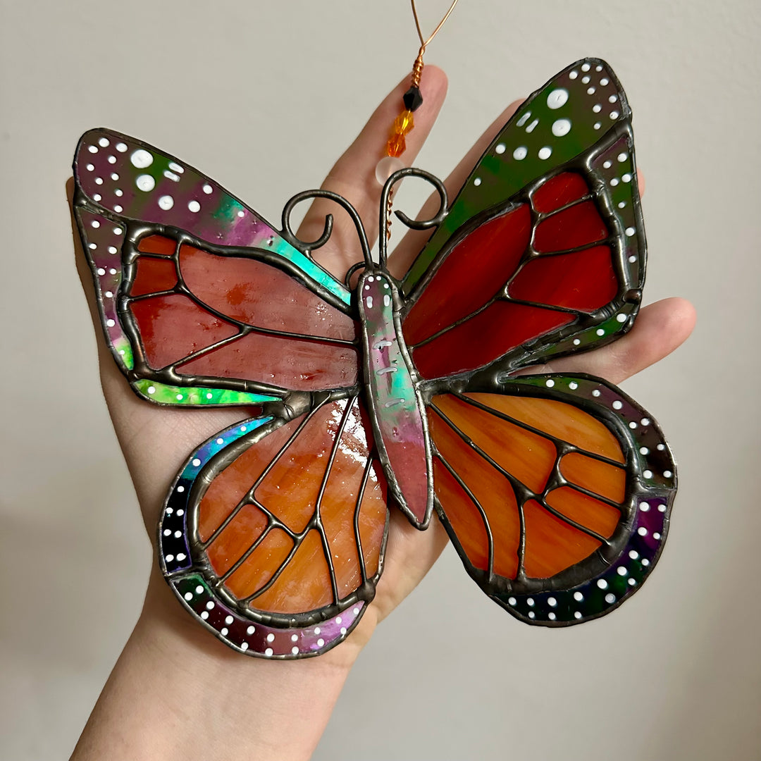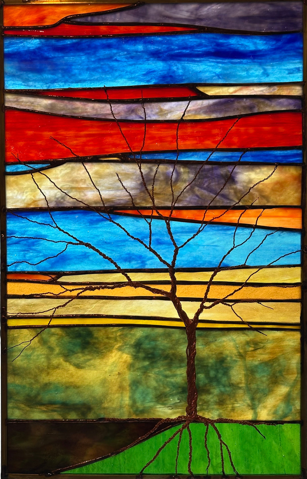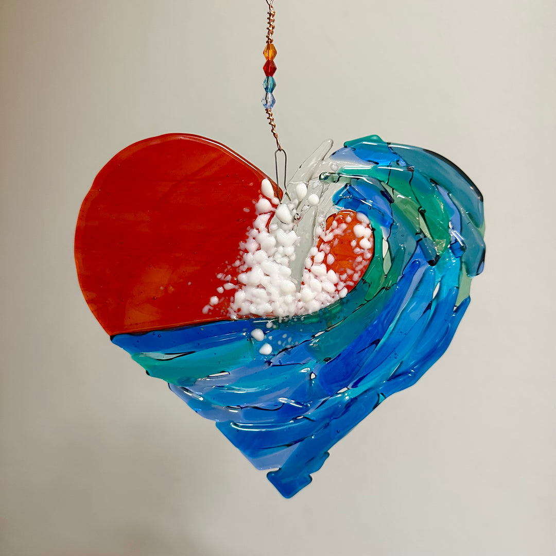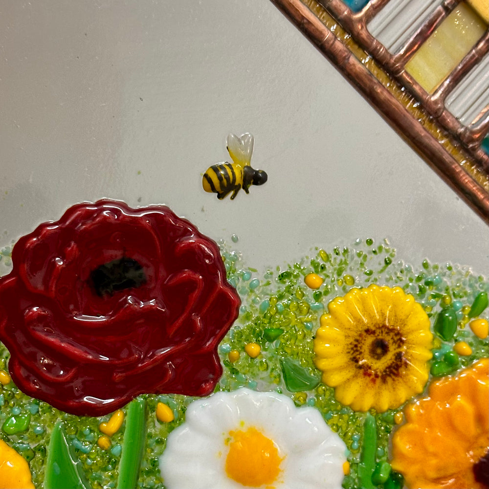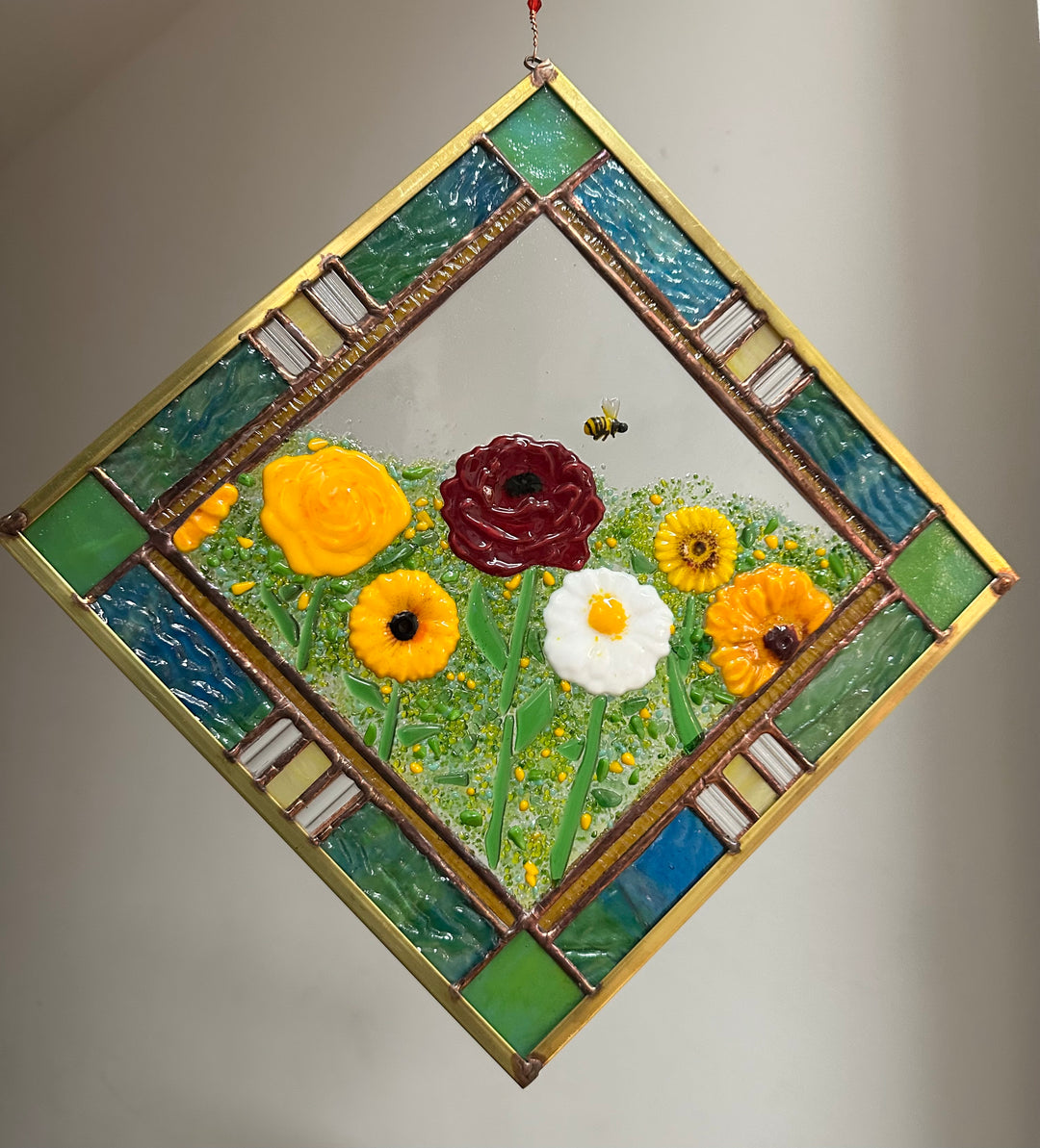 Sheryl loves spending time with her family and her sons' multiple sports teams keep her busy and entertained during the school year. She also enjoys playing and going for walks with her dogs. She loves nature and being in the woods, with flowers, trees, and animals being a major inspiration and subject matter for her art. The thing she likes most about her glass craft is all of the many different elements involved to keep it interesting. If she's sick of soldering, she can just foil that day, or cut, or melt something in the kiln. There's never a dull moment!