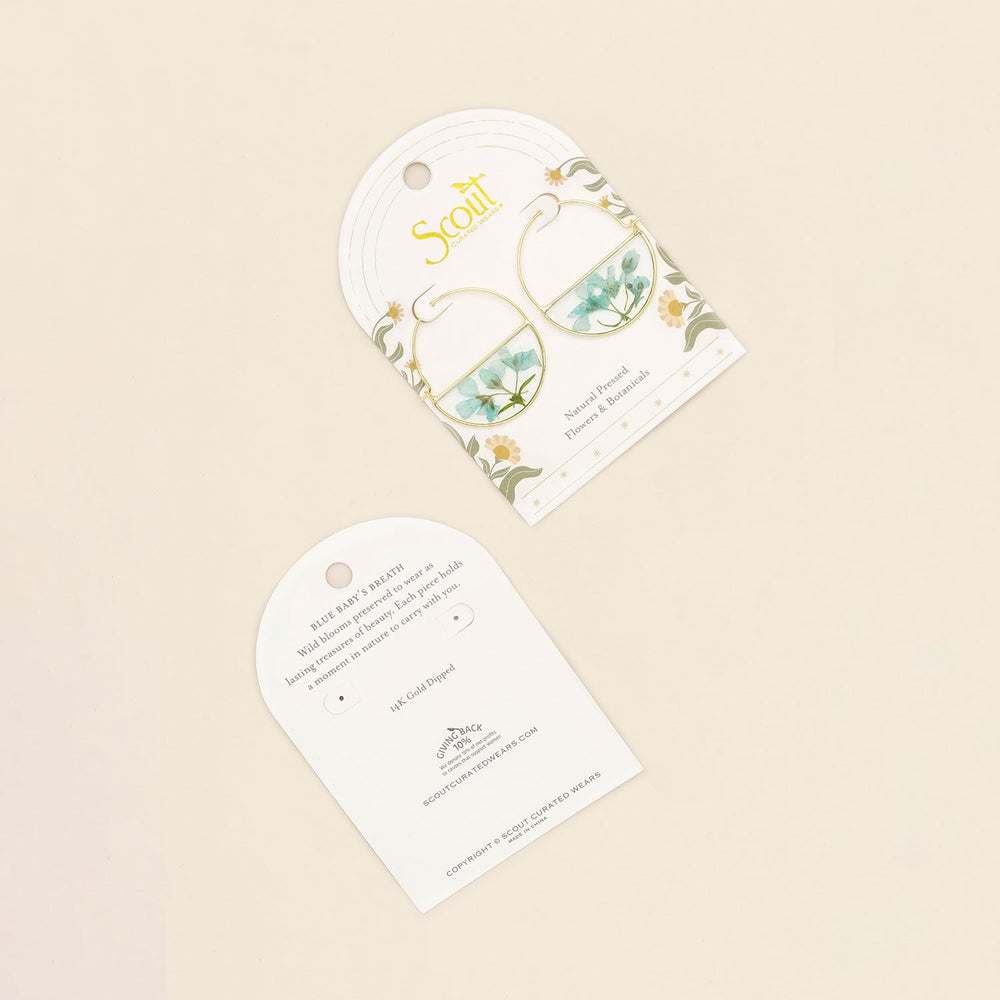 Pressed Flower Hoop Earring Blue Baby's Breath Gold