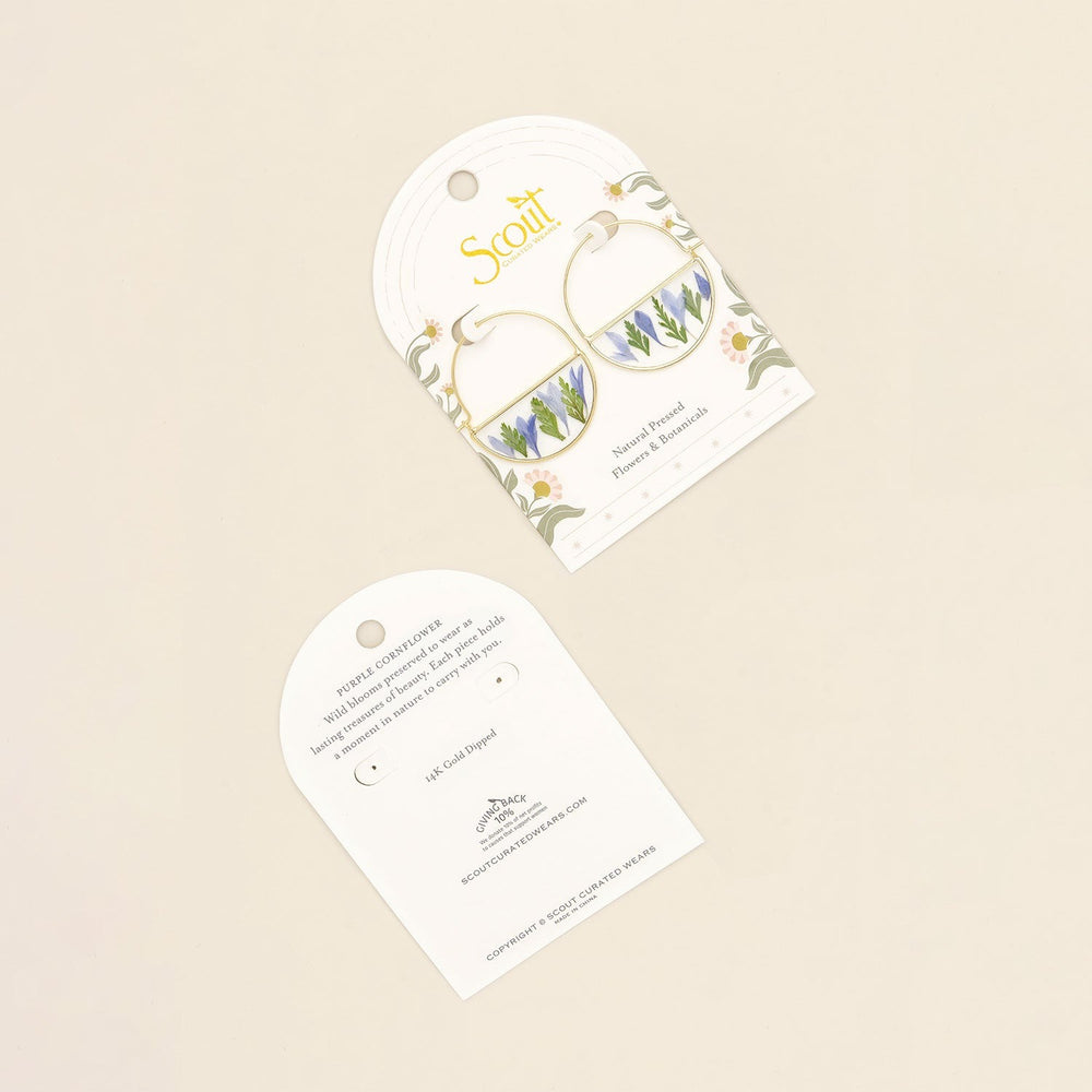 Pressed Flower Hoop Earring Purple Cornflower Gold
