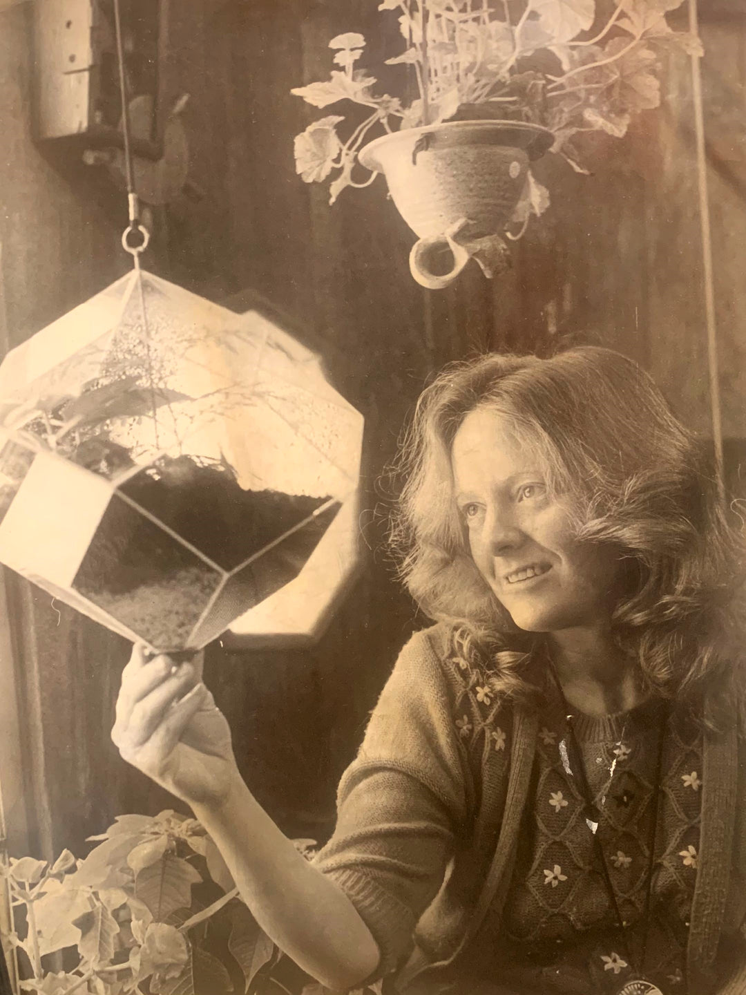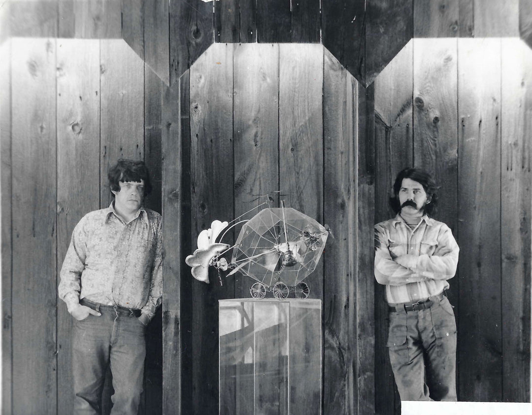 To the right: Original glass terrariums and flying machines created by Deb and John Vahanian in the 1970s.