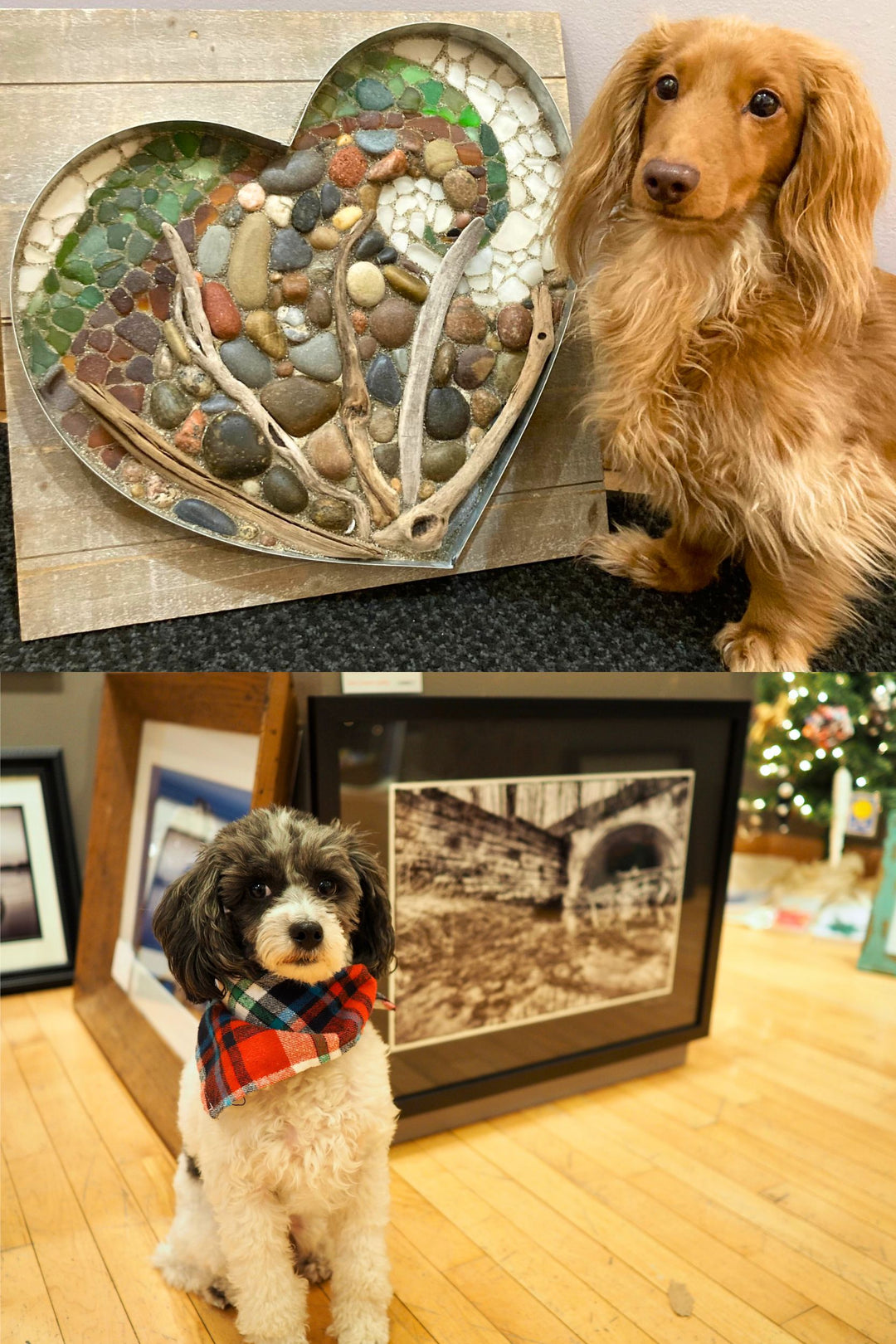Some of the hardest workers on our team, Oliver and Hudson diligently greet each customer with lots of enthusiasm and tail wags. They will also pose patiently with many different pieces of art while their humans attempt to capture the perfect pictures of them to share on social media.